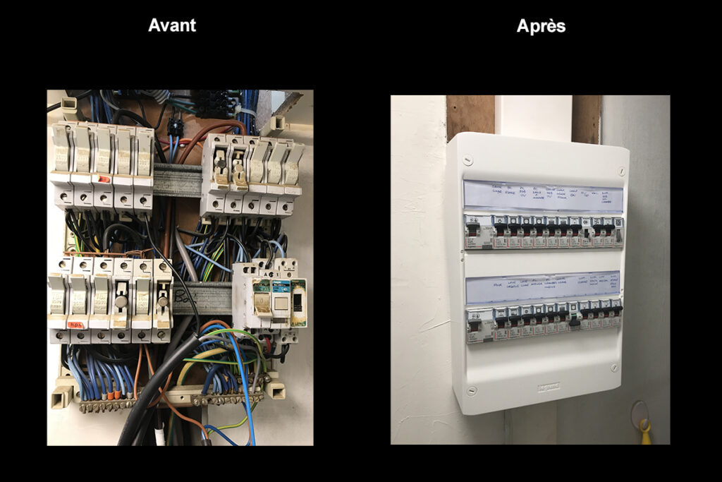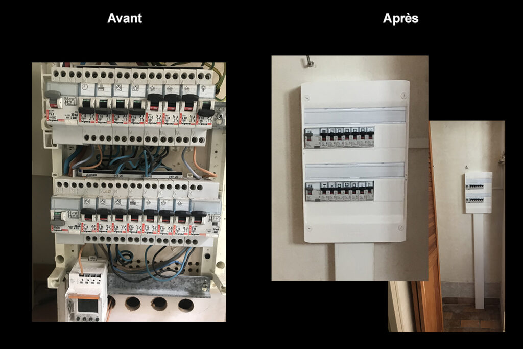 Travaux de mise aux normes de tableaux chez différents clients. Le plus souvent il s’agit de vieux tableaux, ne répondant plus aux normes de sécurité actuelles, ni aux besoins des propriétaires (tableaux sous dimensionnés, incomplets, …)